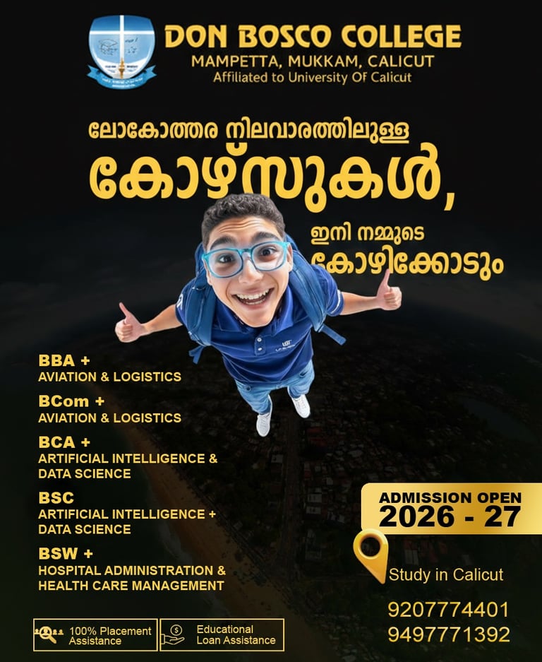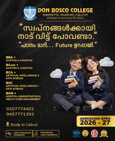 Don Bosco College, Mampetta with its motto “Crescat et Floreat” (Grow and Glow) aims at imparting quality education to its beneficiaries. The College is part of the worldwide Don Bosco Institutions present in 133 countries, and is affiliated to the University of Calicut, Kerala
